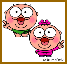 うるまでるびは「うるま」と「でるび」の二人組アーティスト。おしりかじり虫や白オバケ黒オバケ、しかとなどの作品で知られます。左のキャラクターは「うるまくん」と「でるびちゃん」。人間のうるまでるびのカリカチュアです。
